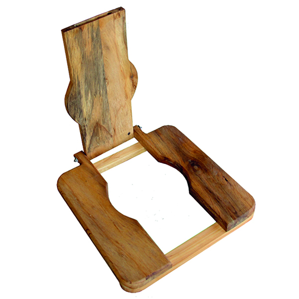 Asiento de madera portátil para sanitario de cubeta.