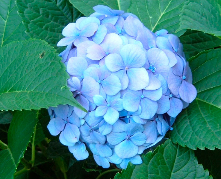 - Descripción: arbusto de 1 a 3m de altura que destaca por sus hermosas flores agrupadas en grandes y vistoso racimos. La coloración es generalmente azul, pero puede variar de blanco hasta morado según la acidez del suelo. Las flores aparecen en primavera.